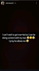 The self-acclaimed ‘Mummy of Lagos’ took to his Instagram story to reveal that one of his wish is to get married and create contents with his man.