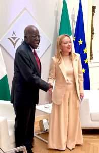 President Bola Ahmed Tinubu on Wednesday held a bilateral meeting with Italian Prime Minister Giorgia Meloni in Rome at the Galleria Nazionale d’Arte Moderna e Contemporanea.